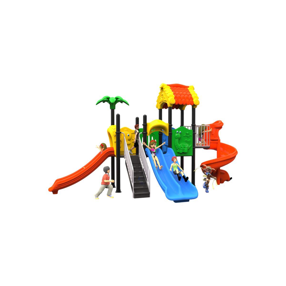 Modelo Floky fabricado con estructura de acero y componentes de plástico rotomoldeado, con terminación en pintura electrostática ideal para la intemperie. Juego híbrido tubular modular.