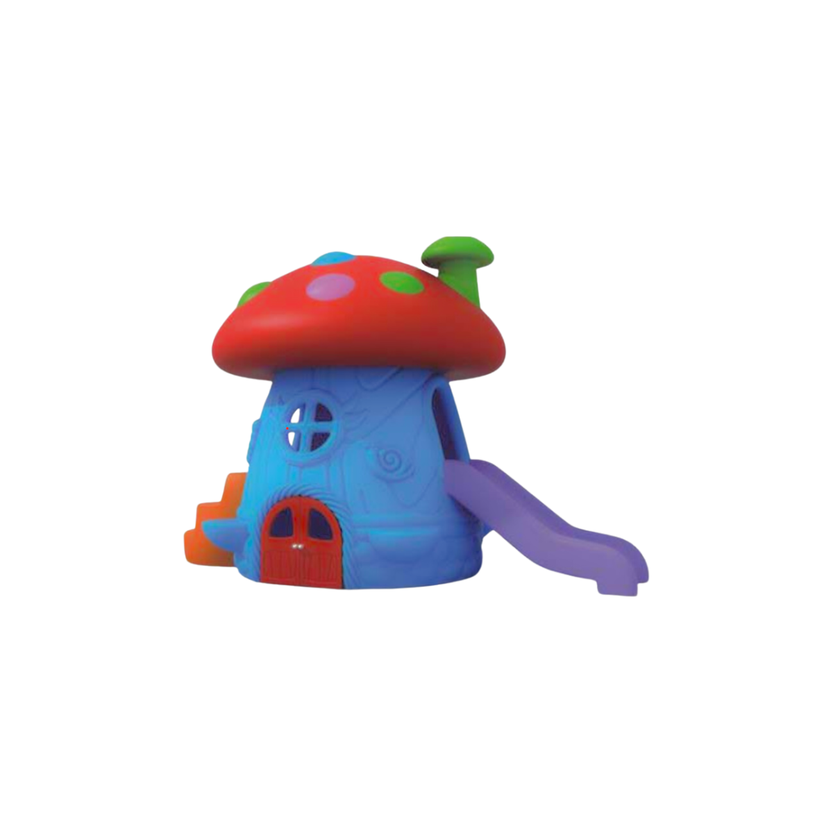 Divertida estructura de plástico rotomoldeado con forma de hongo para juegos de jardín en Monterrey.