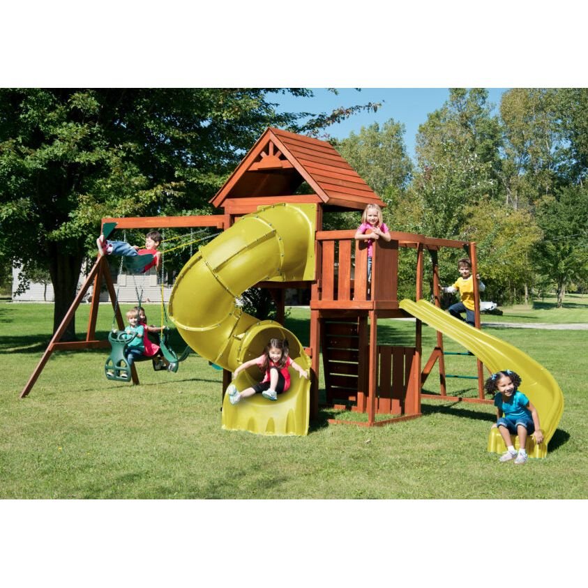 Material: Cedro natural Peso: 258 kilos Medidas: 6.40 x 4.30 x 3.10 Edades: 2 a 12 años Capacidad: 12 niños Tiempo de ensamblaje: 8 a 14 horas Cargos adicionales: Pueden aplicar cargos adicionales de envío para áreas remotas.