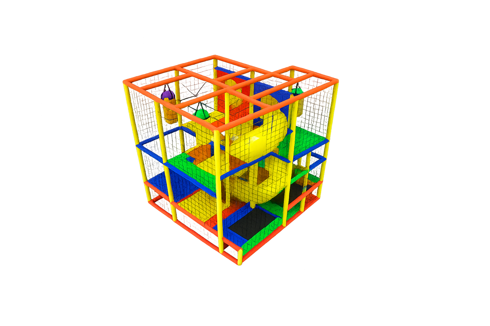 con burbuja, brincolin, lianas colgantes, mini punching bags, tubo