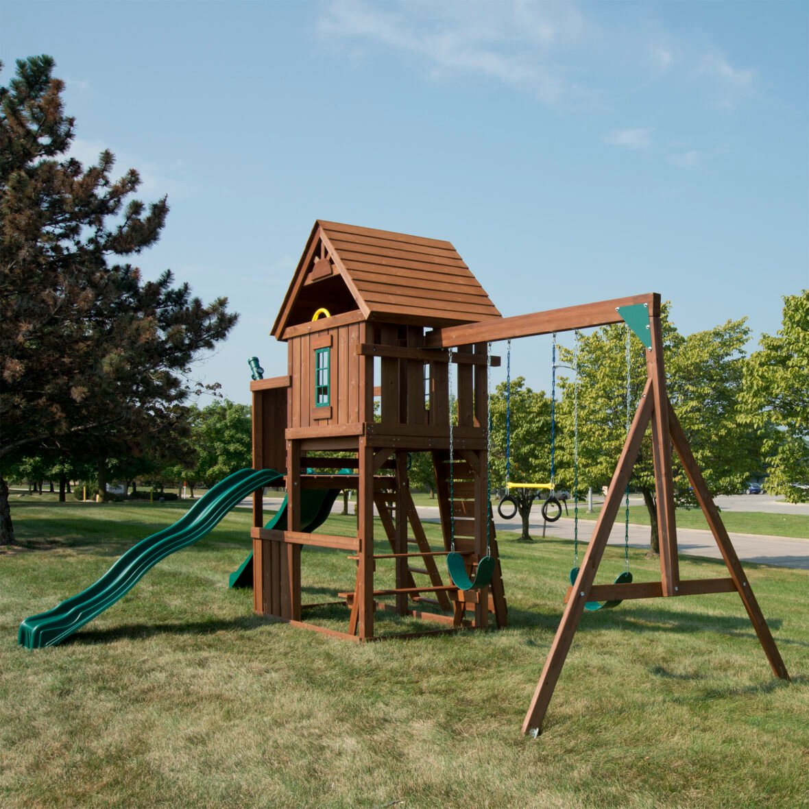 Material: Cedro natural Peso: 240 kilos Medidas: 6.80 x 4.50 x 3.20 Edades: 2 a 12 años Capacidad: 10 niños Tiempo de ensamblaje: 8 a 14 horas Cargos adicionales: Pueden aplicar cargos adicionales de envío para áreas remotas.