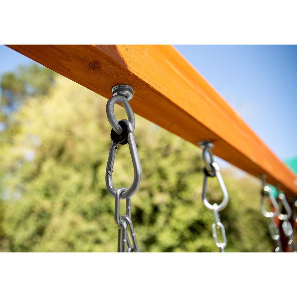 Cada set incluye 2 Ganchos para Columpios de 4 pulgadas y un hardware de montaje fácil de usar, así que tu trabajo será sencillo y sin complicaciones, incluso si es la primera vez que lo haces. Ya sea que estés colocando un columpio en tu nuevo juego de columpios o estés reemplazando un viejo columpio por algo más innovador, los Ganchos para Columpios de Playout Kids son la opción perfecta y la mejor opción. Diseñados para soportar hasta 115 lbs., son perfectos para que los niños se embarquen en horas de juego y aventura en el columpio.