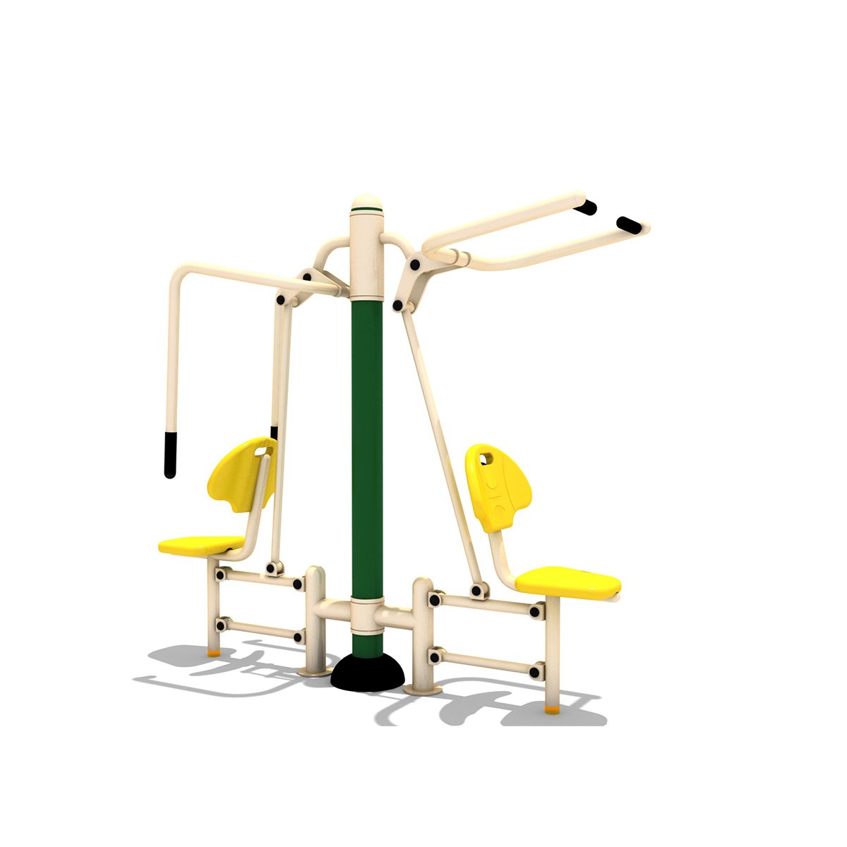 Medidas: 220 x 80 x 220 mts de alto Material: Acero forjado al carbón y plástico rotomoldeado Capacidad: 2 adultos Actividades que incluye: Pecho doble