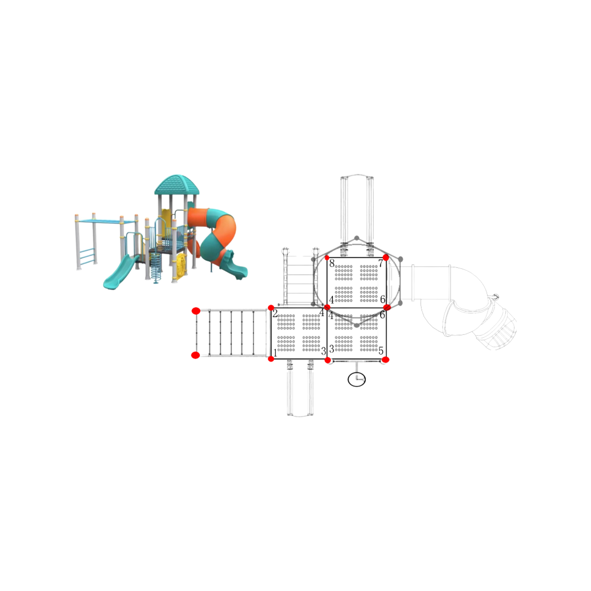 Actividades que incluye: Pasamanos, tobogán, resbaladilla wavy, resbaladilla una pared escaladora un acceso con escalera.