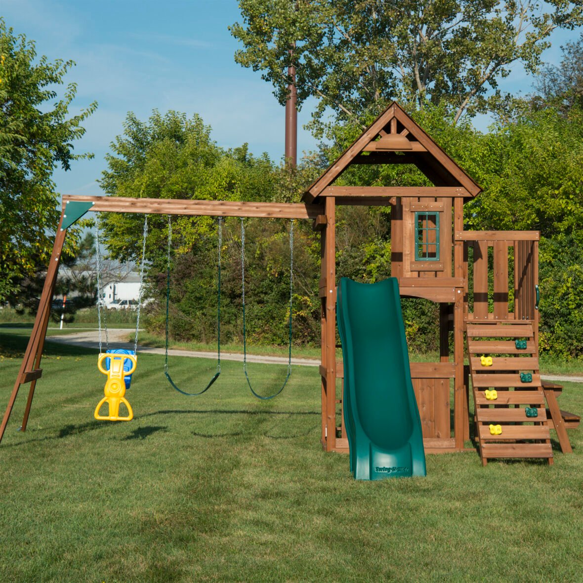 Material: Cedro natural Peso: 228 kilos Medidas: 3.80 x 5.00 x 3.20 Edades: 2 a 12 años Capacidad: 9 niños Tiempo de ensamblaje: 5 a 10 horas Cargos adicionales: Pueden aplicar cargos adicionales de envío para áreas remotas.