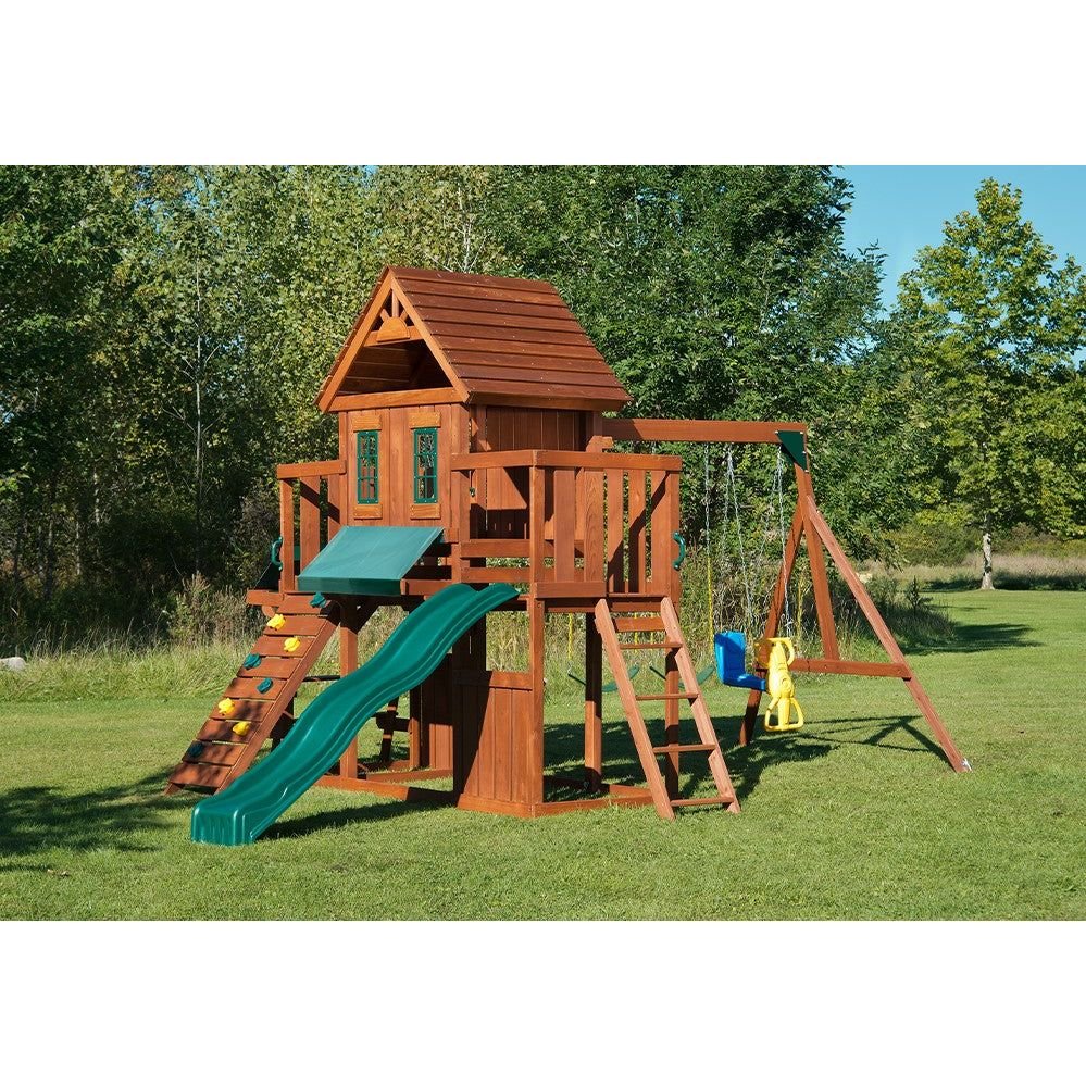 Material: Cedro natural Peso: 326 kilos Medidas: 4.30 x 4.20 x 3.20 Edades: 2 a 12 años Capacidad: 12 niños Tiempo de ensamblaje: 8 a 14 horas Cargos adicionales: Pueden aplicar cargos adicionales de envío para áreas remotas.